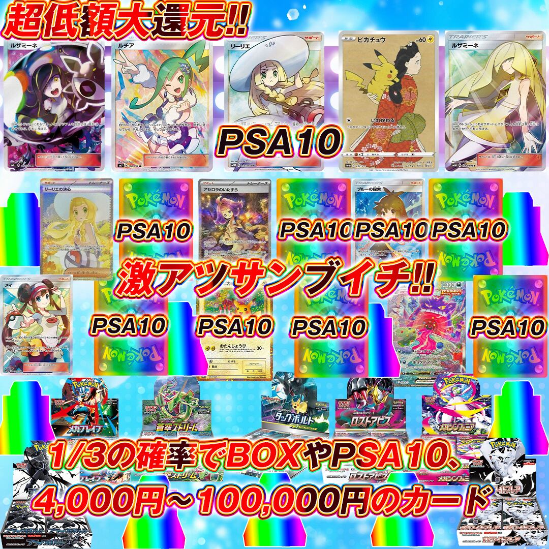 ポケモンカード月初の激アツ低額大還元オリパ くじ【1/3の確率でPSA10orBOXor4,000円〜100,000円❤️】