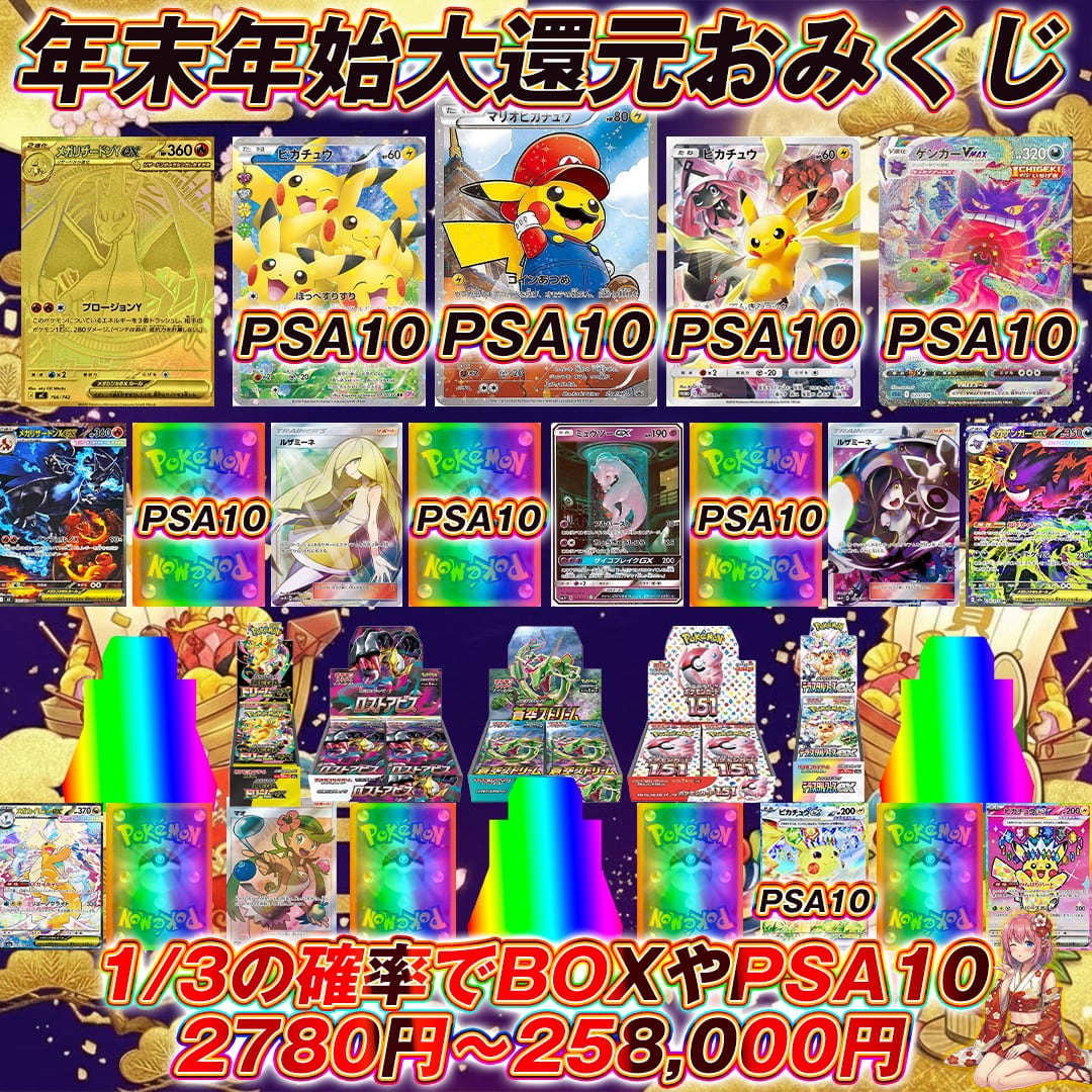 ポケモンカード年末年始低額大還元おみくじ オリパくじ【【1/3の確率でPSA10orBOXor2,780円〜258,000円❤️】