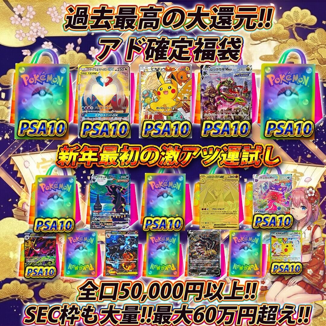 ポケモンカード新年アド確定大還元福袋オリパくじ【全口50,000円以上!!❤️】