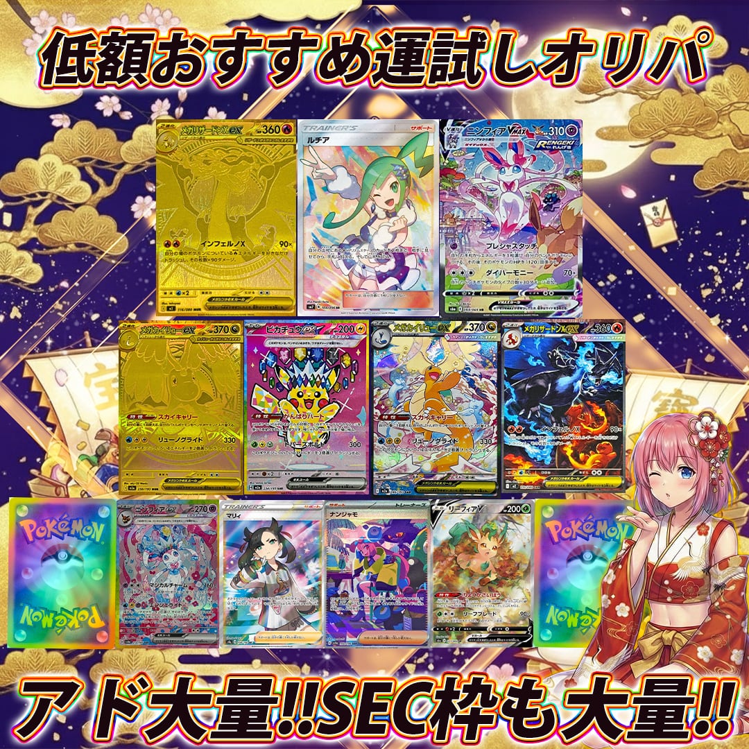 ポケモンカード低額おすすめ運試しオリパくじ【アド大量!!SEC枠大量!!❤️】