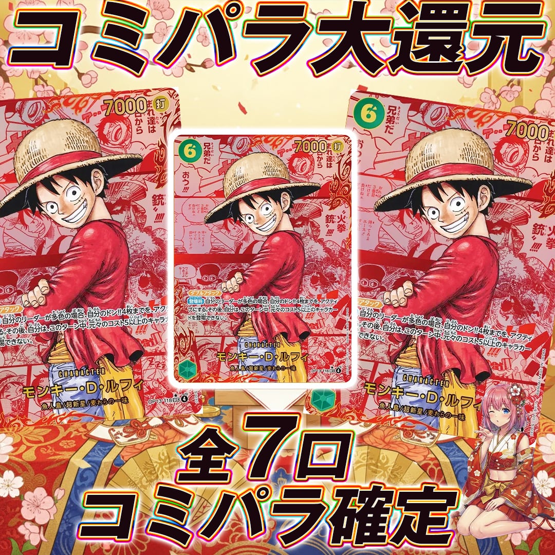 全7口 ワンピースカードコミパラ大還元オリパくじ【全口コミパラ確定封入!!❤️】