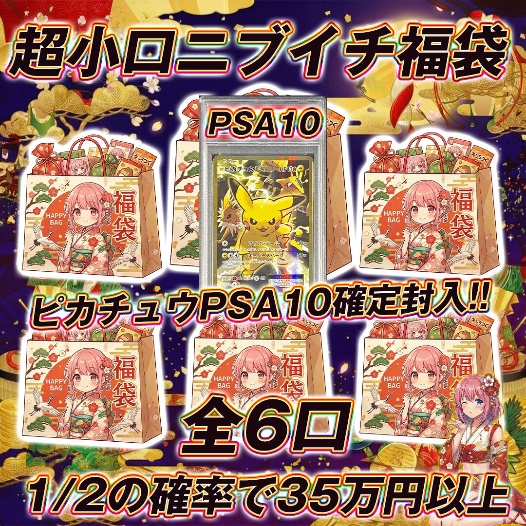 全6口 ポケモンカードピカチュウPSA10確定福袋オリパくじ【1/2の確率で35万円以上!!⭐️❤️】