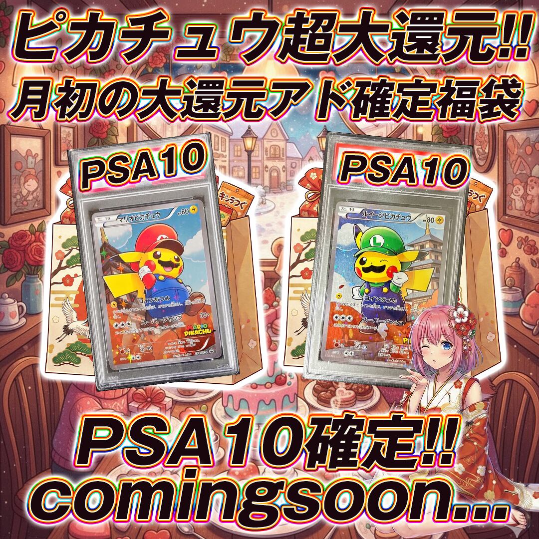 マリオピカチュウPSA10、ルイージピカチュウPSA10、ブラッキーVMAX、ピカチュウSAR PSA10、スタデピカチュウSAR、ブラッキー&ダークライ、リーリエの決心SAR PSA10など×16 SEC枠最大70万円超えの封入!!