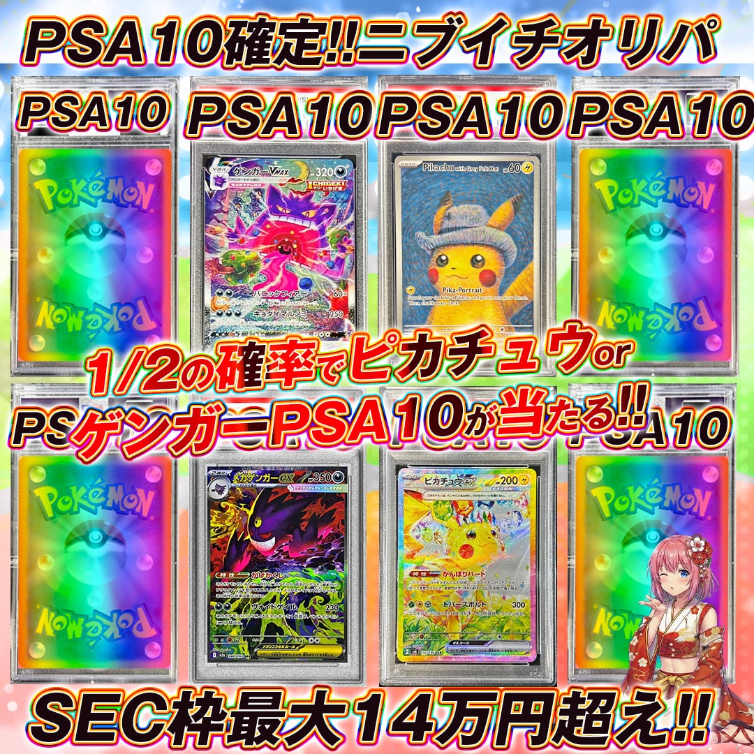 ポケモンカードPSA10確定ニブイチオリパくじ【1/2の確率でゲンガーPSA10orピカチュウPSA10が当たる!!❤️】