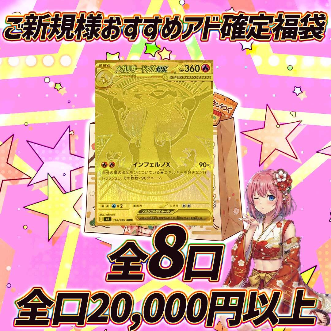 全8口 ポケモンカードアド確定2万円福袋オリパくじ【全口20,000円以上!!❤️】