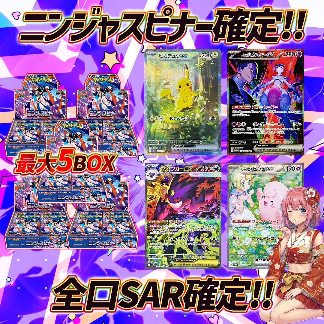 全14口 ポケモンカードニンジャスピナー+SAR確定オリパくじ【ニンジャスピナー+SAR確定最大5BOX】