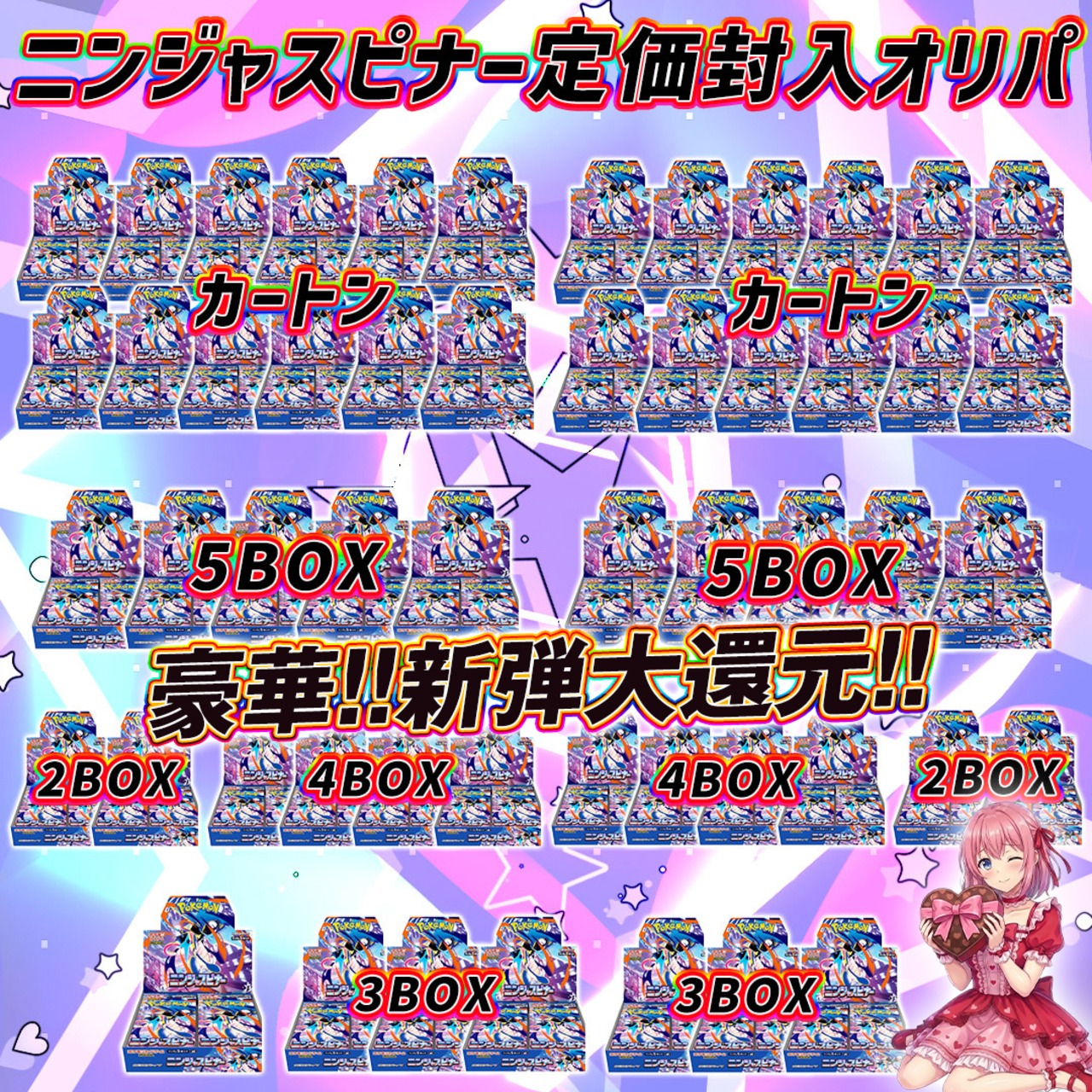 ポケモンカード新弾BOXニンジャスピナー大還元オリパ くじ【ニンジャスピナー大量!!カートン❤️】